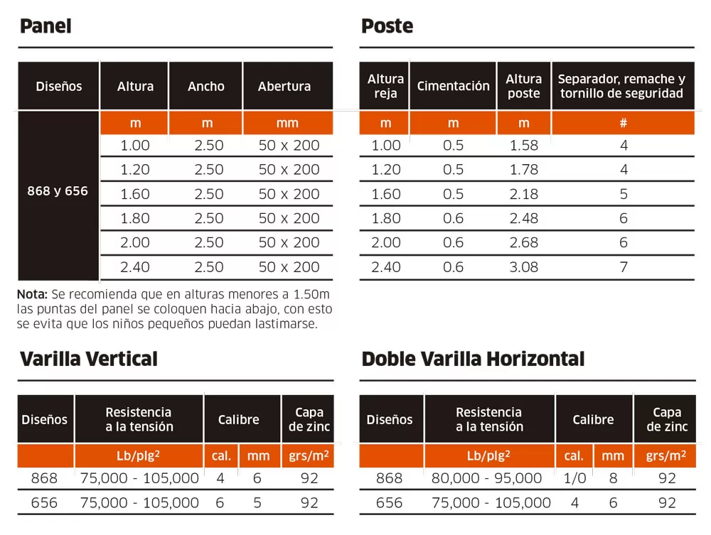 Los dos alambres horizontales de refuerzo, uno a cada lado del panel, le dan resistencia a impactos y recargones. Su diseño impide que la escalen, evitando la violación del perímetro.